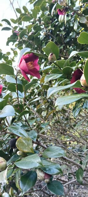 今日の椿は、「淡路紫」です。紫色のヤブ椿で人気があります。明るい紫色がどこか神秘的なものを感じさせる美しい椿です。